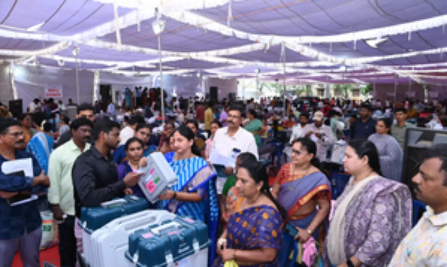 More than 4.44 lakh employees on poll duty have cast their votes in Assembly and Lok Sabha polls at Voter Facilitation Centres (VFCs) across the state. A total of 4,44,216 postal ballots were polled in 25 Lok Sabha constituencies while 4,44,218 ballots were polled in 175 Assembly segments.