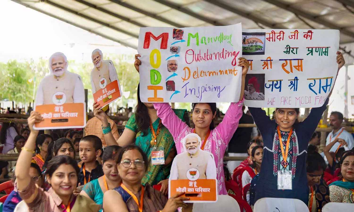 BJP supporters gather for PM Narendra Modi's public meeting ahead of Lok Sabha elections in Nawada (PTI)