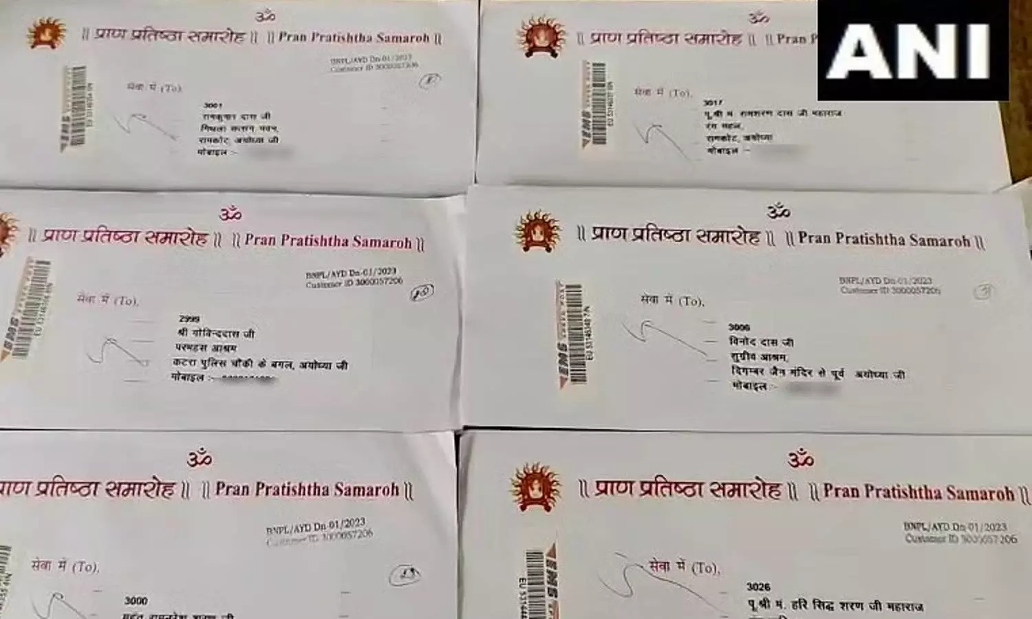 Ram temple 'Pran Pratistha' invitation cards. (X/@ANI)