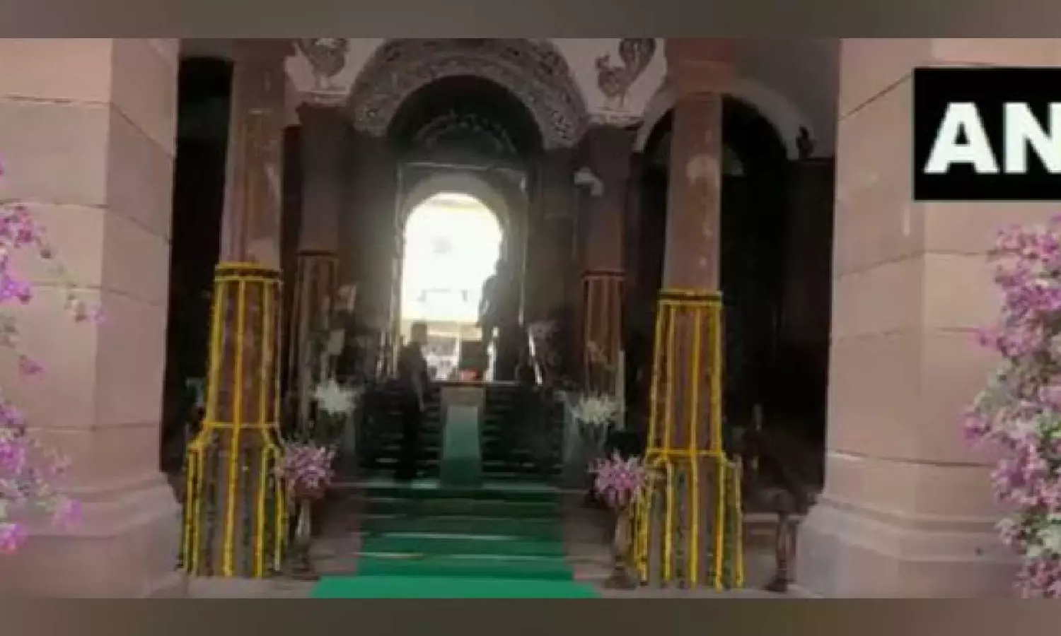 NEW DELHI: Preparations are underway at the old Parliament building for the Central Hall programme which will be held today at 11 AM in the presence of the Member of Parliaments of both- Rajya Sabha and Lok Sabha.