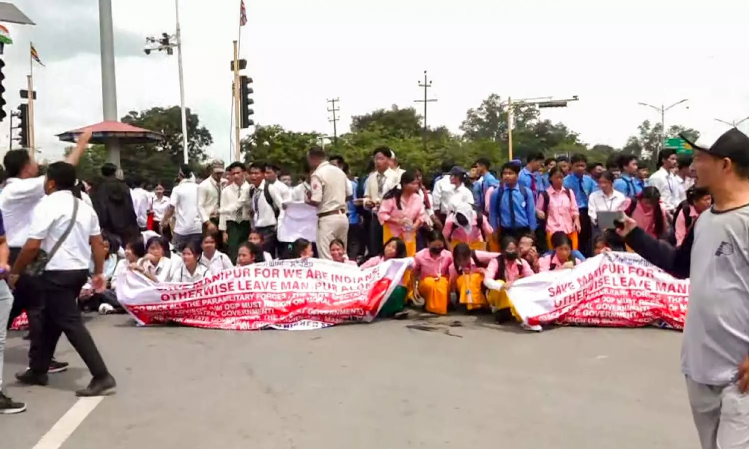 Meanwhile, hundreds of students from various schools and colleges spent the night at camps set up at Khwairamband Women Market in Imphal. The students, in their uniforms, were helped by women shopkeepers to set up camps at the market.