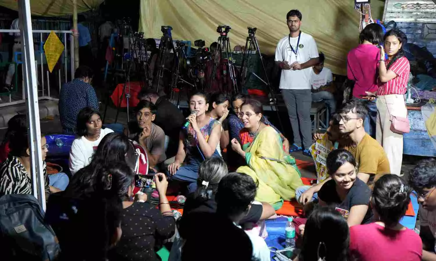 Junior doctors continue their 'dharna' against the RG Kar Hospital rape and murder incident, near Swasthya bhawan in Kolkata (PTI)