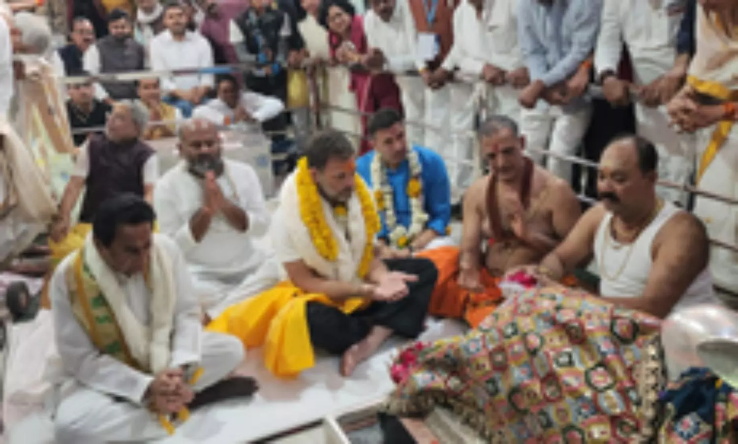Rahul Gandhi offers prayers at Mahakal temple in Ujjain
