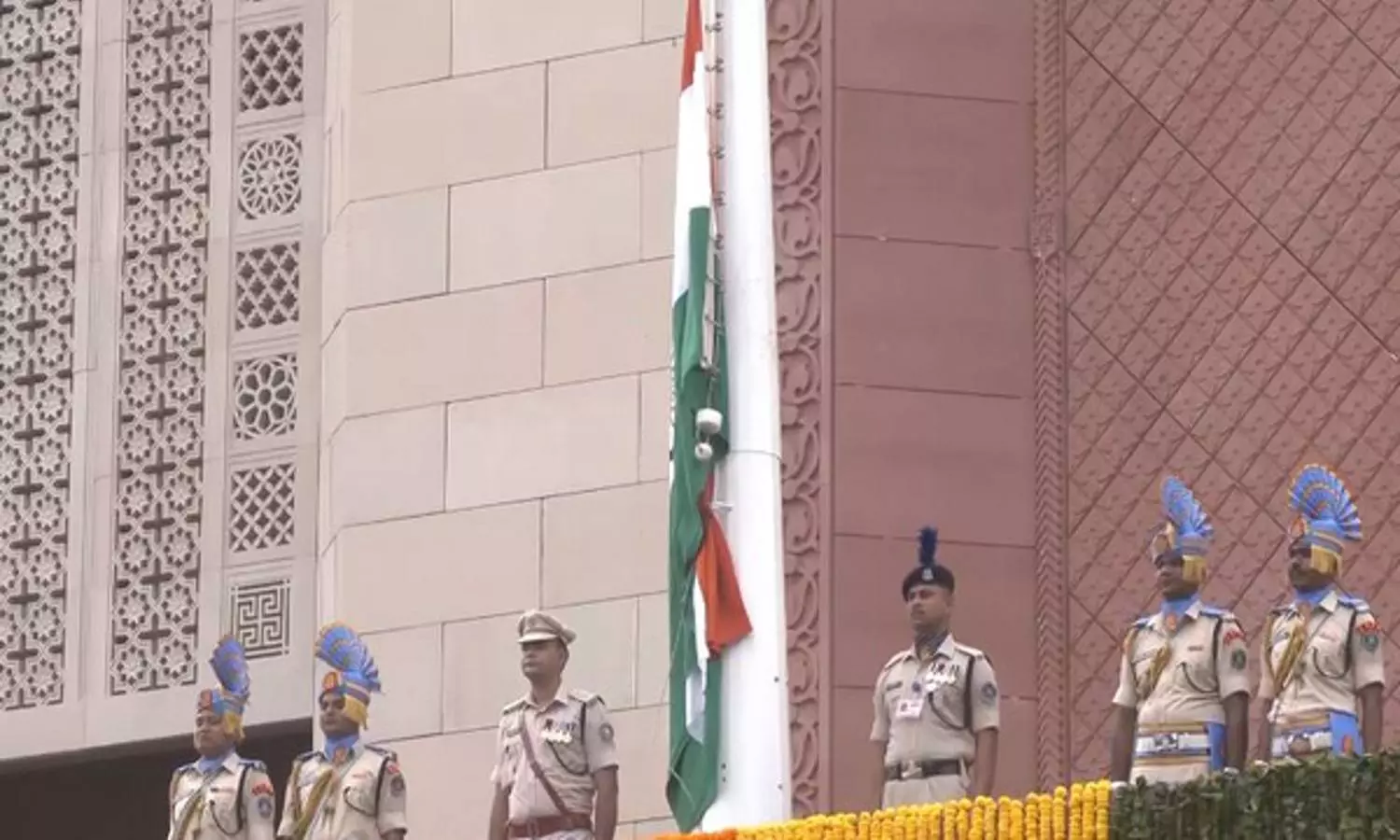 Rajya Sabha Chairman hoists national flag at new Parliament building