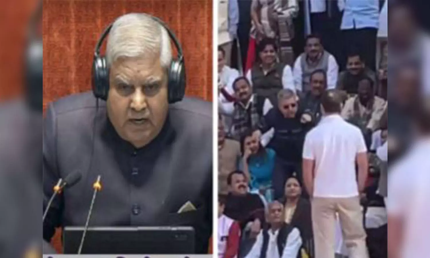 Rajya Sabha Chairman Dhankhar and visuals during the opposition protest (ANI)