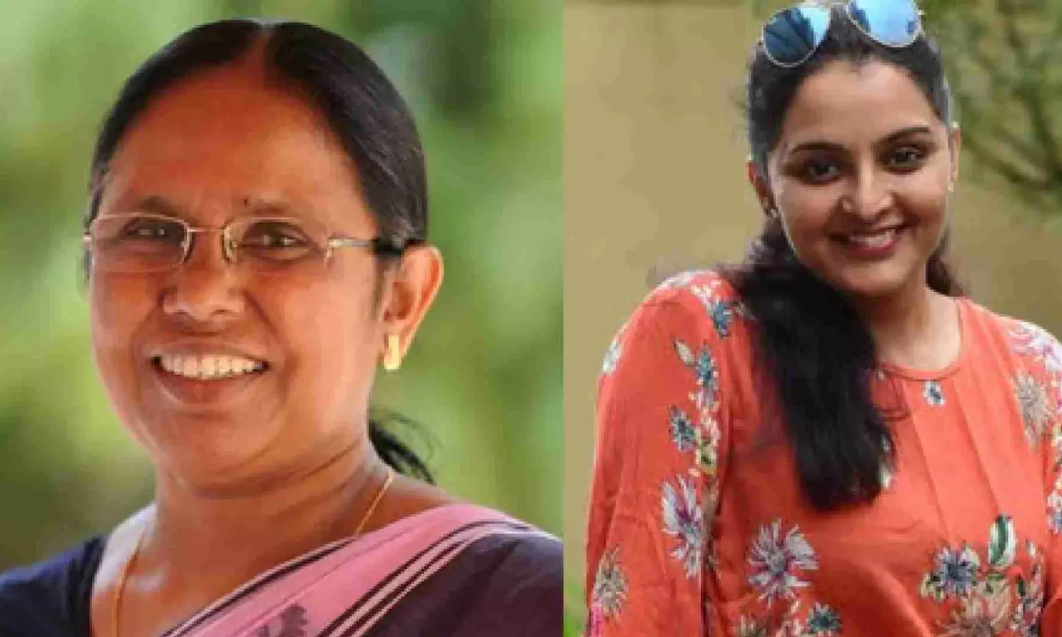 Senior CPI (M) leader K K Shailaja and Malayalam film actress Maju Warrier