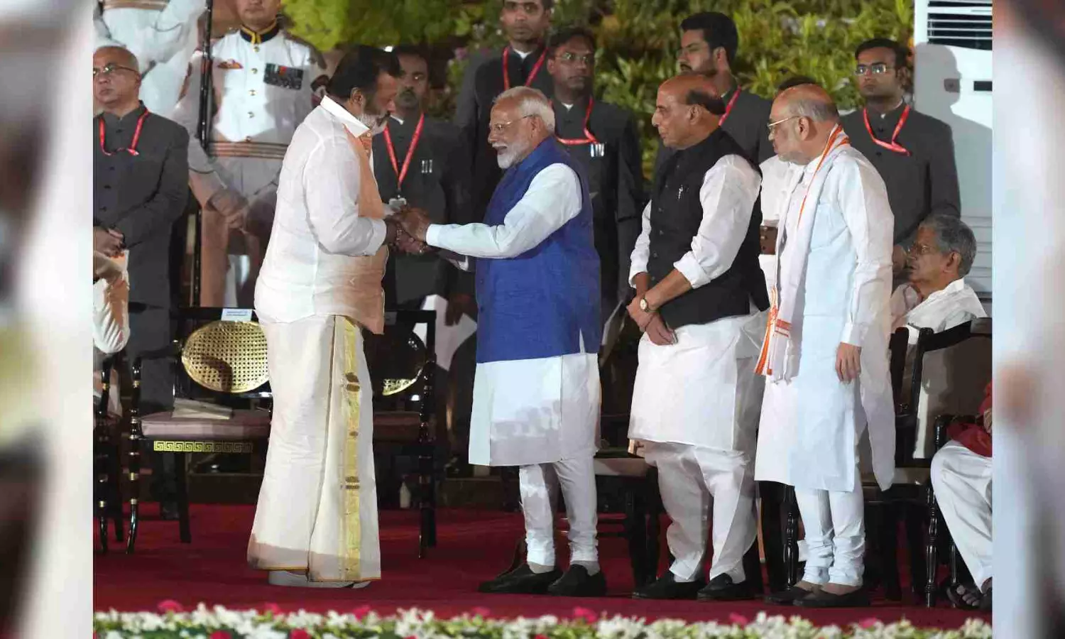 Union Minister and actor-turned-politician Suresh Gopi and PM Modi at Rashtrapati Bhavan