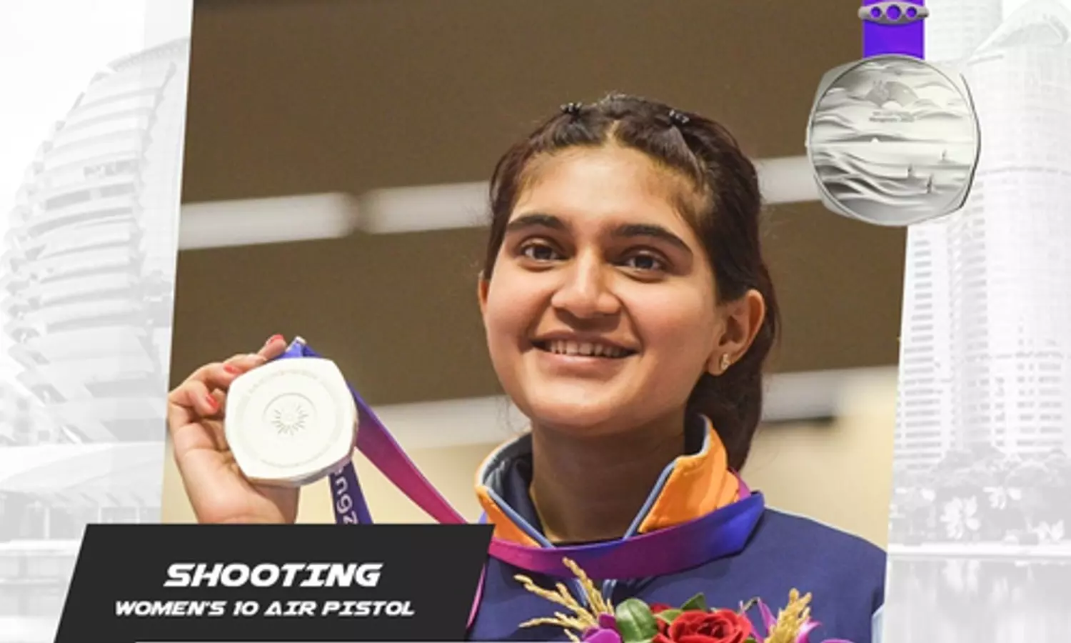 The shooter combined with Manu Bhaker and Rhythm Sangwan to win gold medal in the women's 25m pistol event. She clinched silver in the women's individual 25m pistol event.