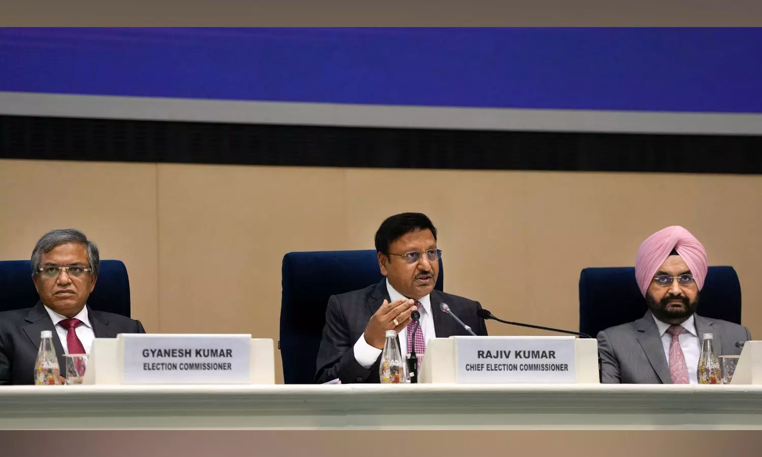 The three-phase elections to the 90-member Jammu and Kashmir assembly will be held on September 18, September 25 and October 1, Chief Election Commissioner Rajiv Kumar told a press conference in the presence of Election Commissioners Gyanesh Kumar and Sukhbir Singh Sandhu.