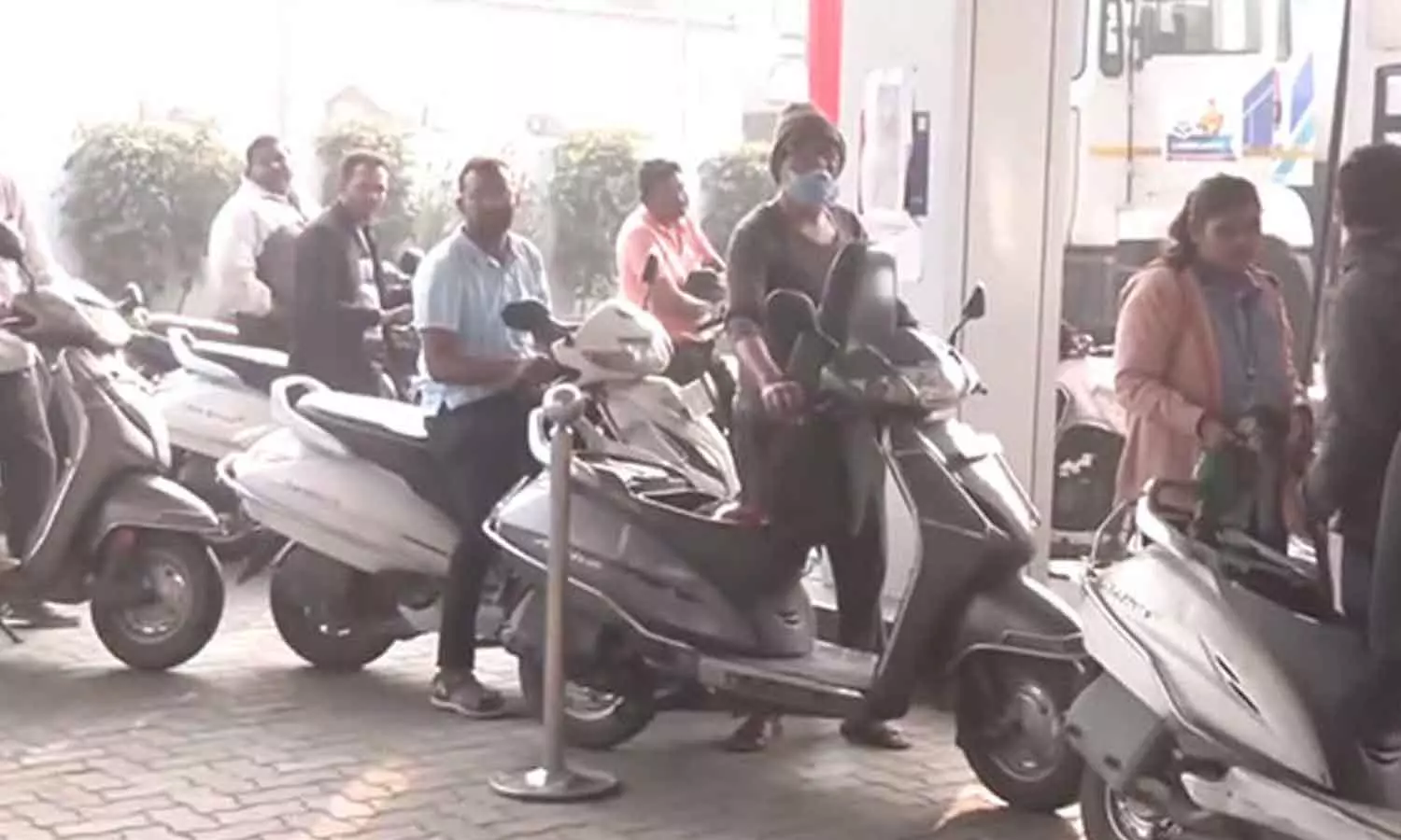 People at petrol pumps in Nagpur faced long queues due to protests staged on Tuesday.