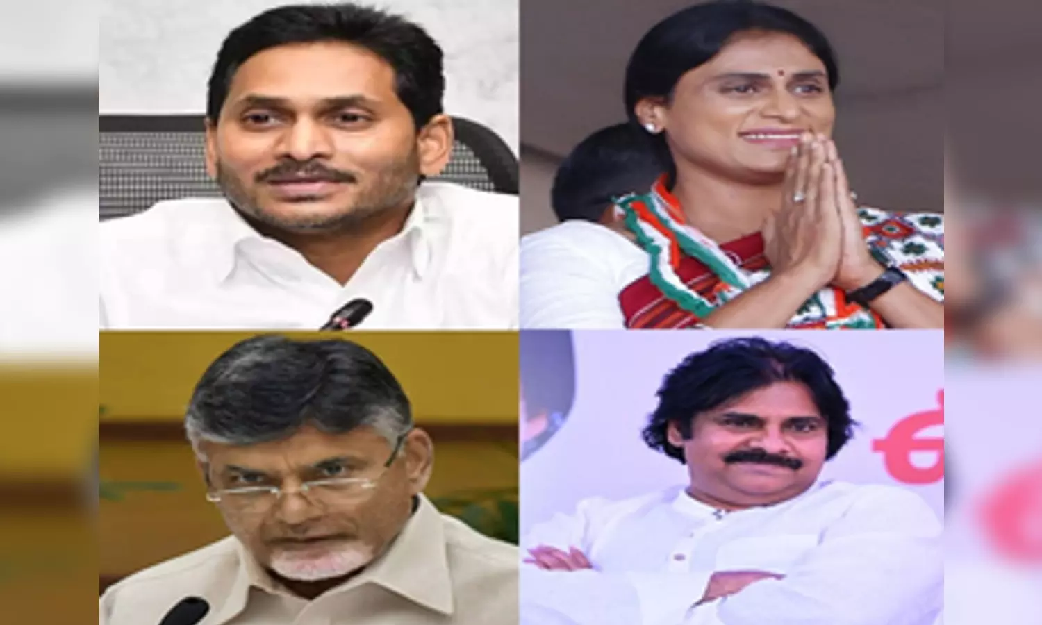 (L-R) Jagan Mohan Reddy, Sharmila Reddy, Chandrababu Naidu, Pawan Kalyan (IANS)