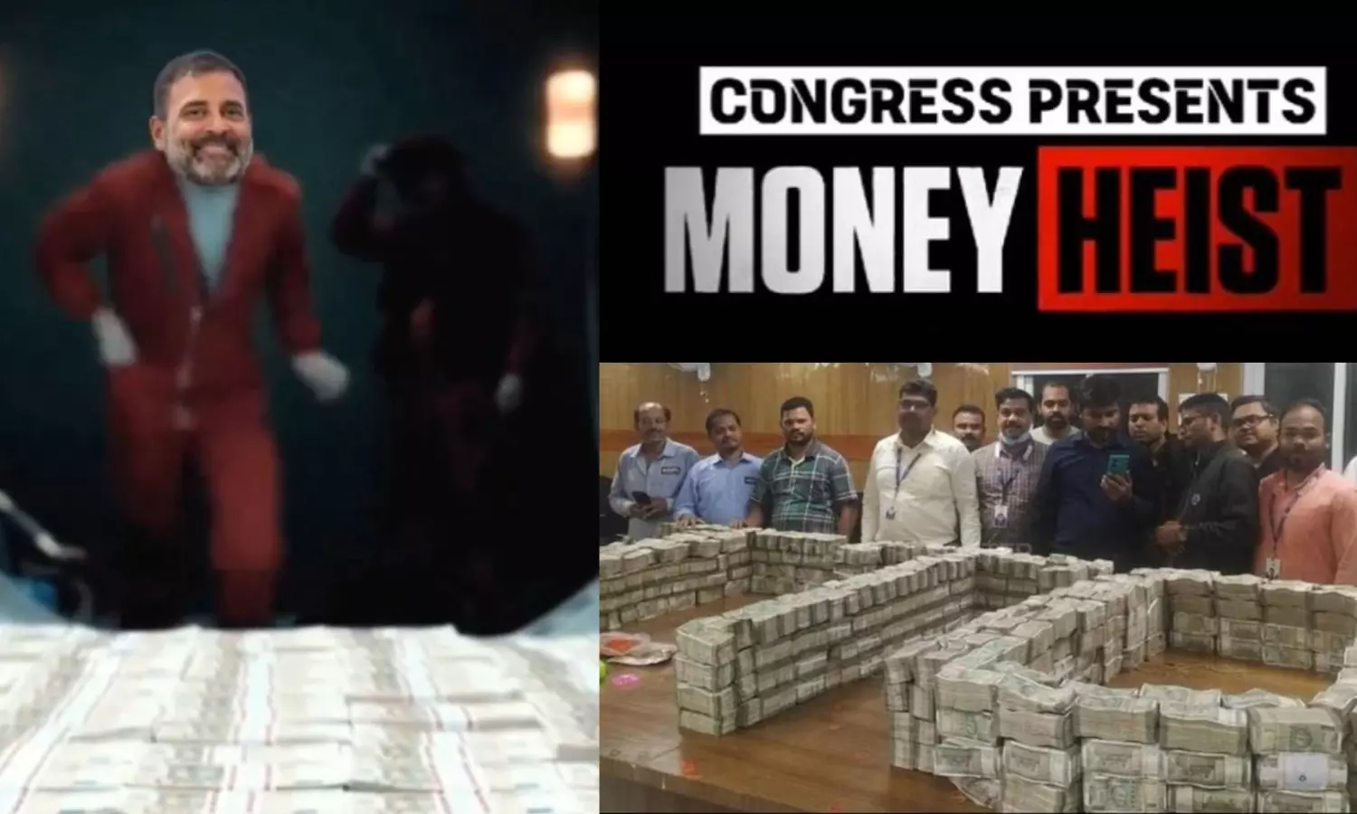 The BJP captioned the video "Congress presents the Money Heist!" while the series' popular title song plays in the background.