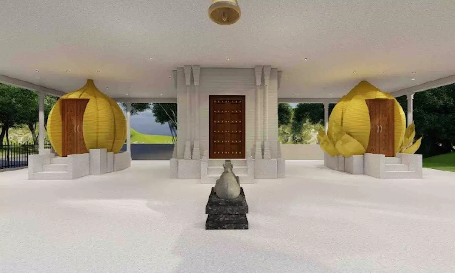 "The three sanctums, or garbhas, within the structure represent a 'modak', dedicated to Lord Ganesha; a Shivalay, a square abode devoted to Lord Shankar; and a Lotus shaped home for Goddess Parvati," said Hari Krishna Jeedipalli, MD, Apsuja Infratech.