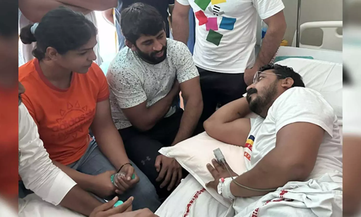 The two wrestlers met the Bhim Army chief at the hospital and inquired about his health.