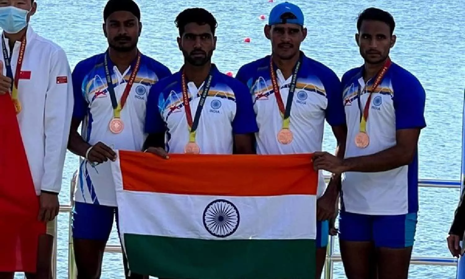 HANGZHOU: The Indian rowing team consisting of Ashish Kumar, Bheem Singh, Jaswinder Singh and Punit Kumar secured a bronze medal in the men's four rowing final at the Asian Games on Monday. The Indian team clocked the timing of 6:10.81, getting the bronze medal. The gold medal was won by China (6:10.04) and Uzbekistan took home the gold with a timing of 6:04.96.