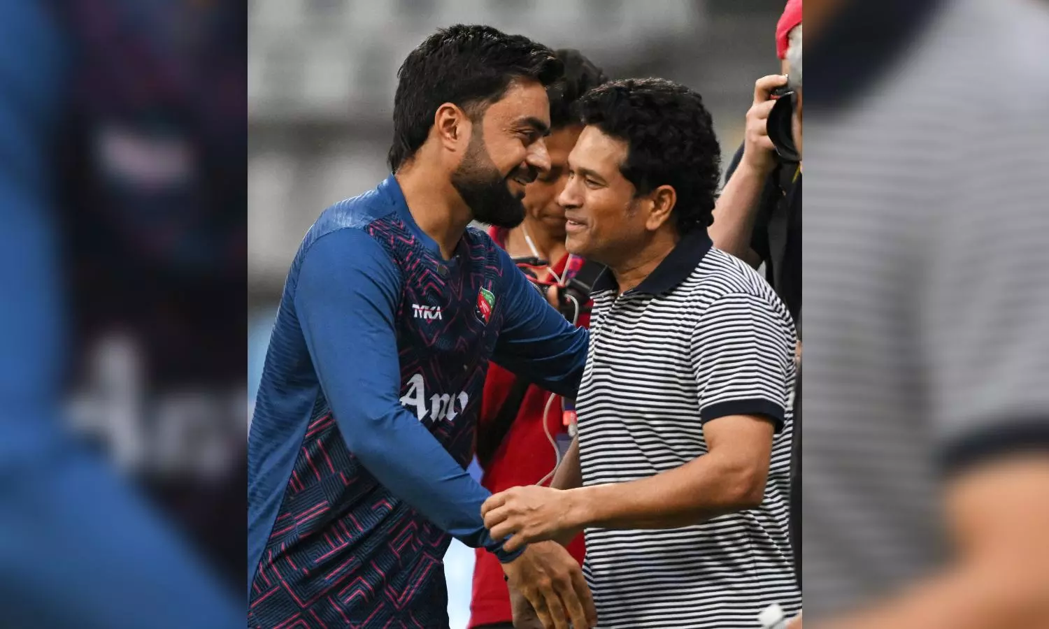 Rashid Khan greets ICC Ambassador Sachin Tendulkar during his visit to their practice session in Mumbai few days ago