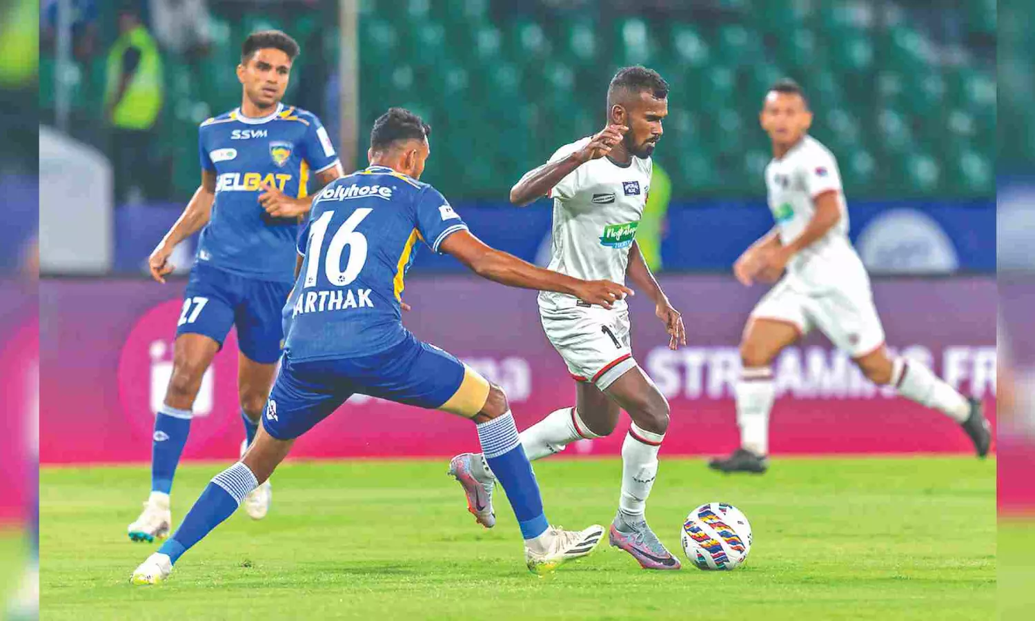 Action during Chennaiyin FC and NorthEast United FC match