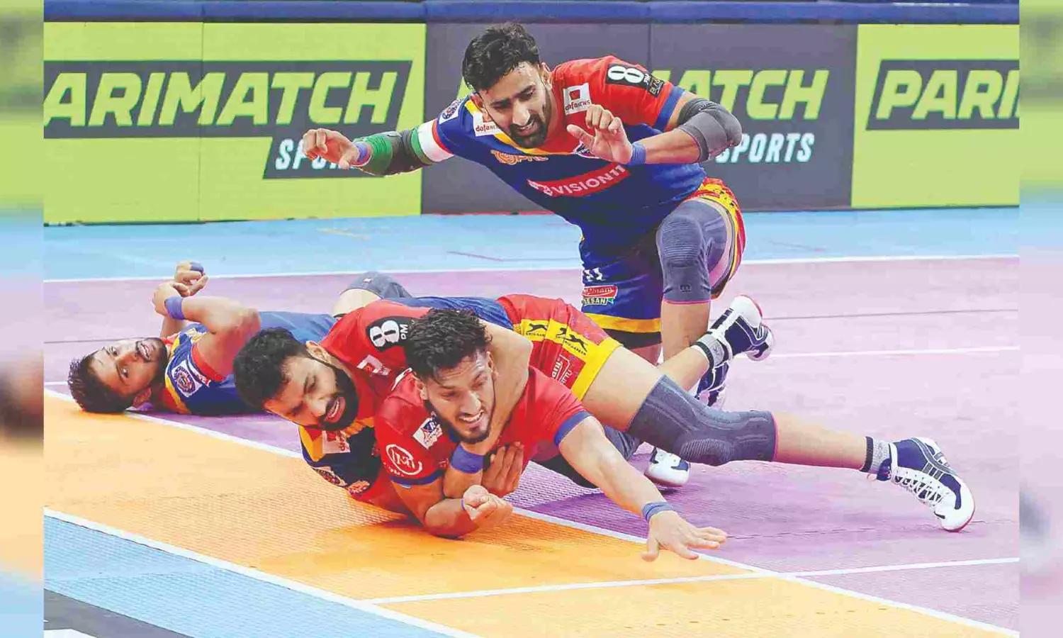 Action during UP Yoddhas and Dabang Delhi in the PKL on Saturday