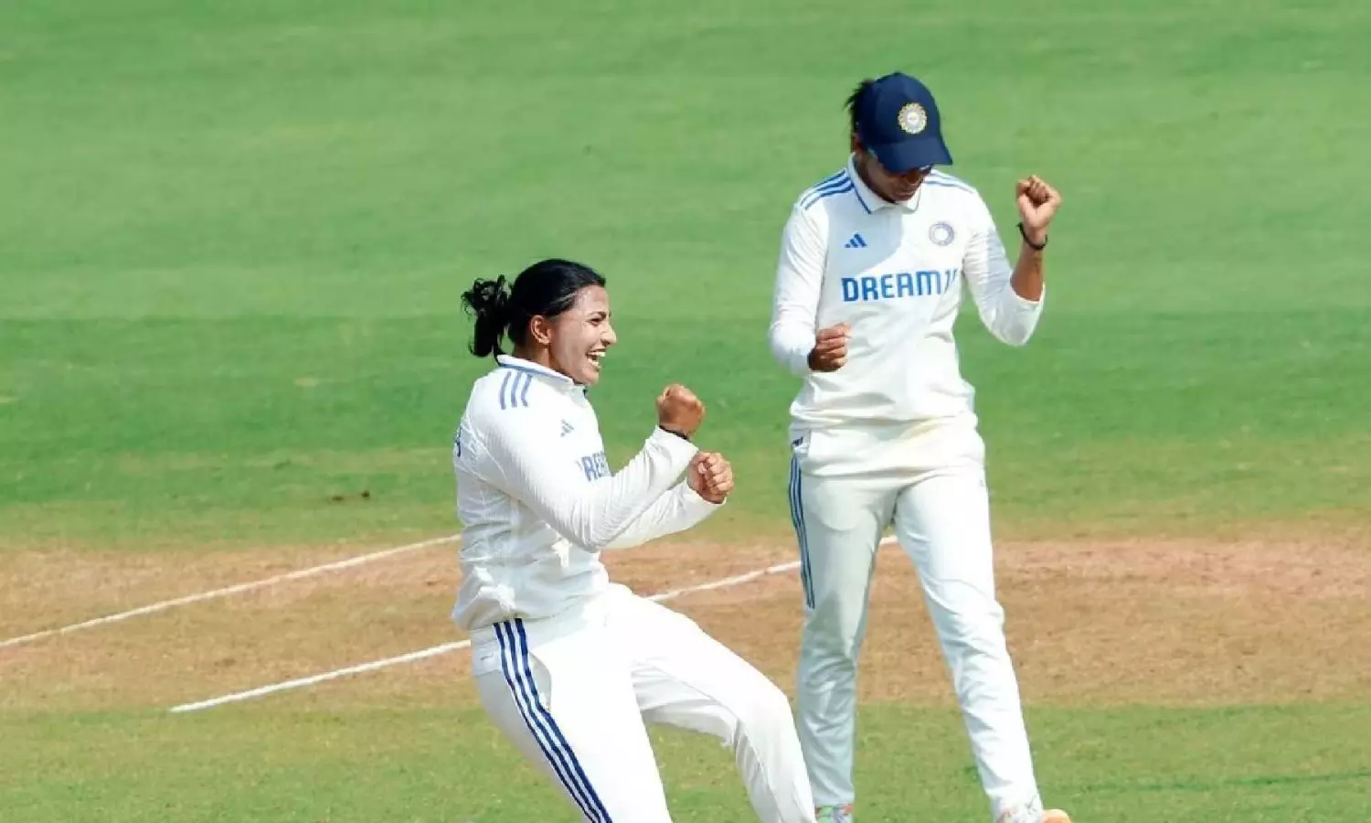 Australia Women 219 & 156/3 in 50 overs (, Ellyse Perry 45, Tahila McGrath batting 46; Sneh Rana 2-44) trail India Women 406 all out in 126.3 overs (Deepti Sharma 78, Smriti Mandhana 74, Jemimah Rodrigues 73; Richa Ghosh 52, Pooja Vastrakar 47; Ashleigh Gardner 4-100, Annabel Sutherland 2-41, Kim Garth 2-58) by 31 runs.