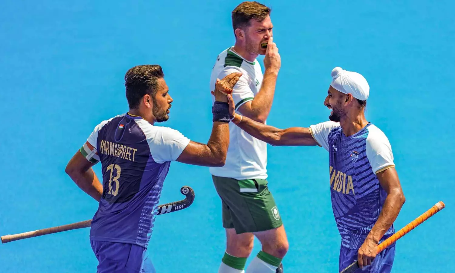 PARIS: The Indian men's hockey team expectedly beat Ireland despite a few defense lapses to more or less secure its passage into the quarterfinals of the Paris Olympics, with skipper Harmanpreet scoring a brace in a 2-0 win in a Pool B match, here Tuesday.