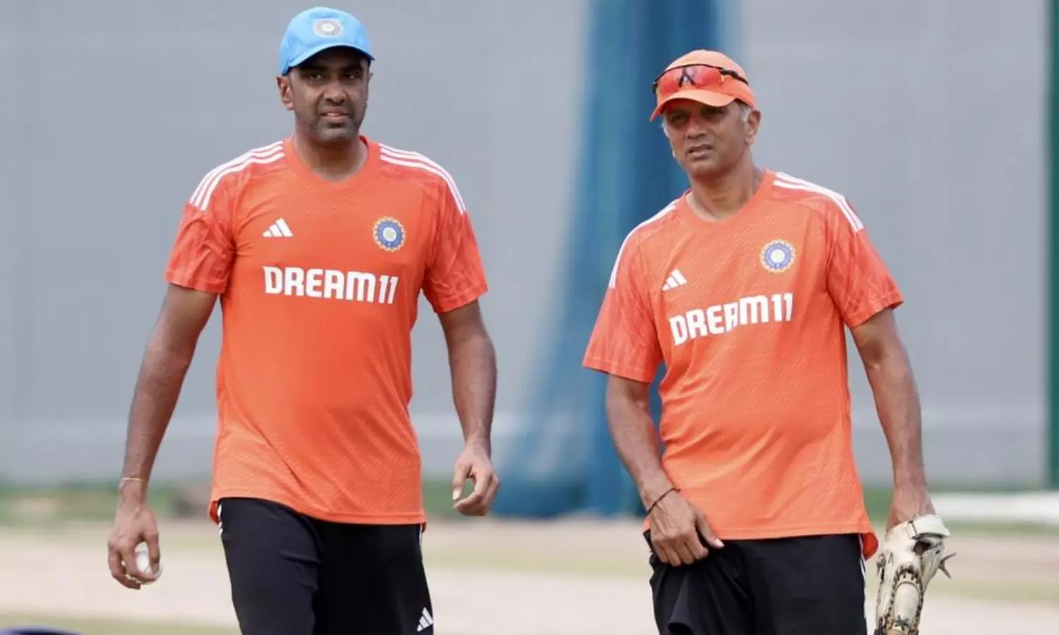 Ravichandran Ashwin and Rahul Dravid in the practice session
