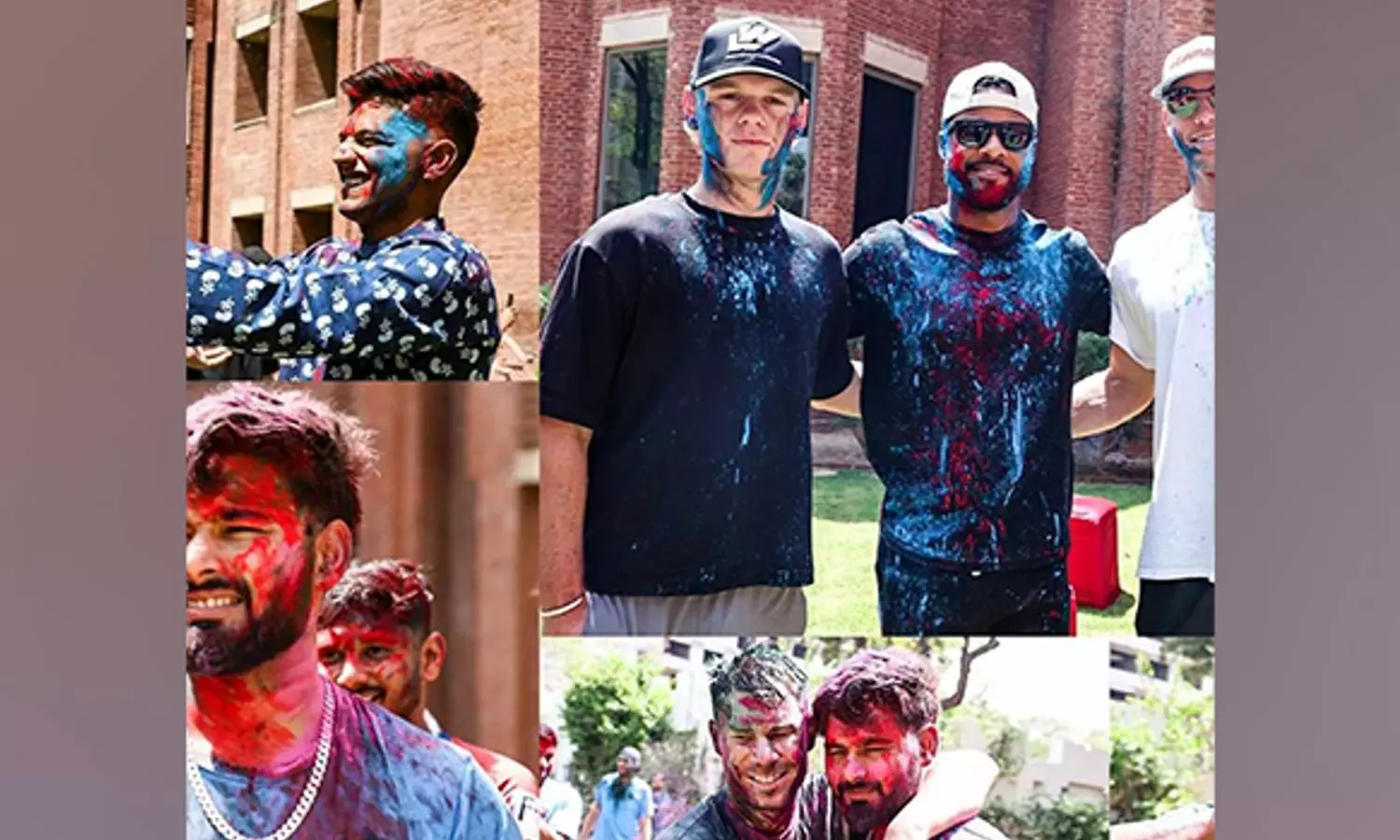 Starting with the Delhi Capitals camp, star Indian wicketkeeper-batter Rishabh Pant, who has finally made his much-anticipated return to the field after a life-threatening car accident in 2022, was seen enjoying the festival with his teammates. Along with him was the Australian opener, David Warner, who was seen hugging it out with his captain, all drenched in colour.