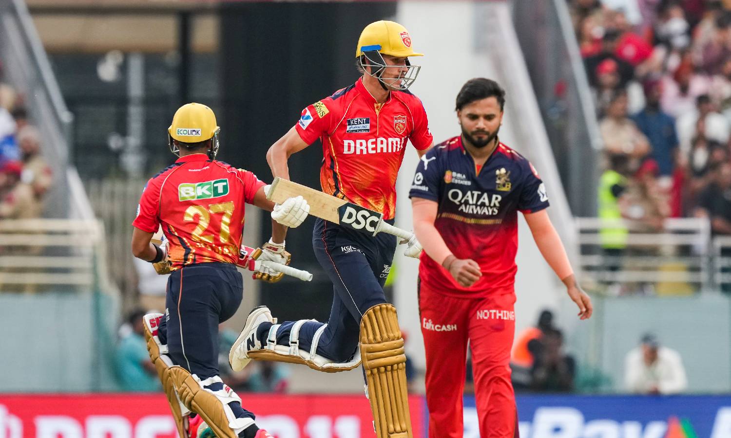 Punjab Kings' Marco Jansen and Shashank Singh run between the wickets during an Indian Premier League (IPL) 2025 T20 cricket match between Punjab Kings and Royal Challengers Bengaluru (PTI)