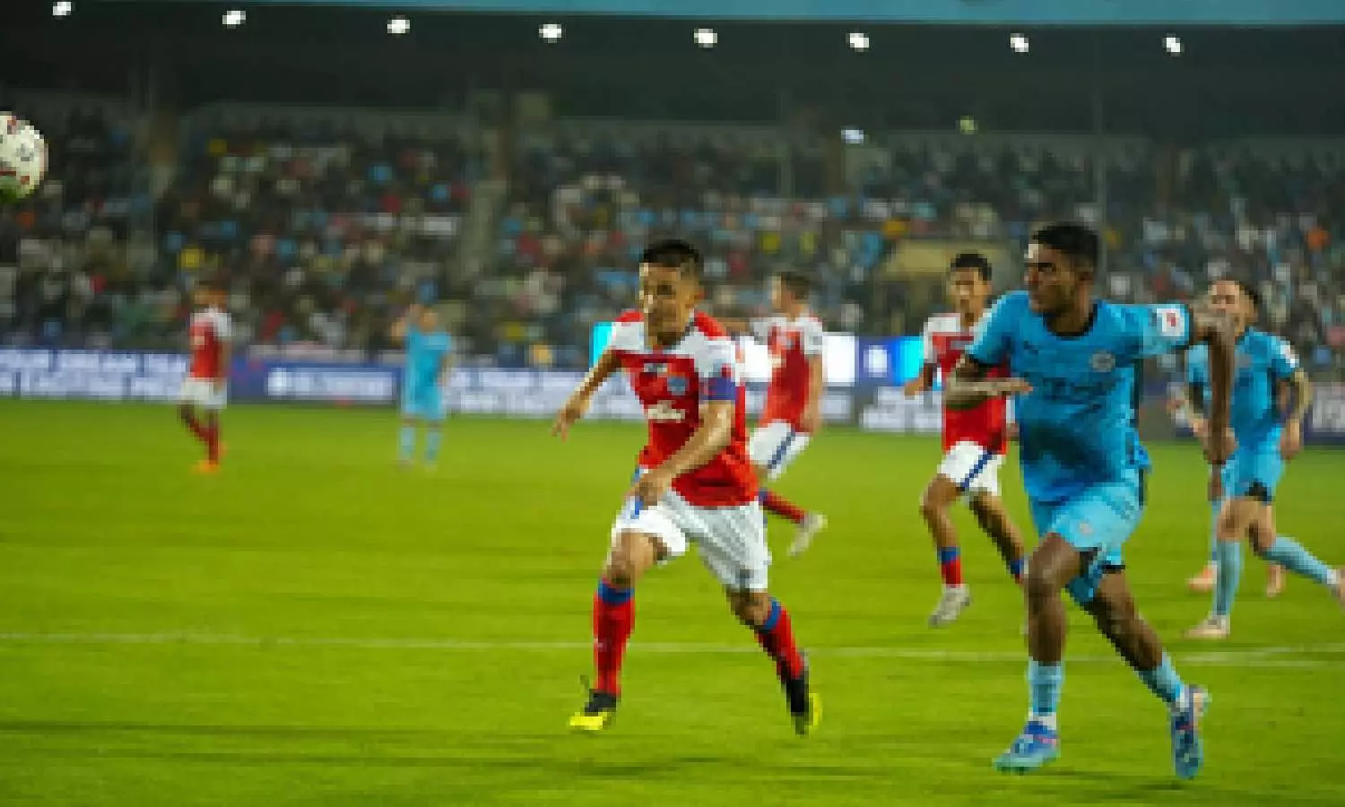 Into the second period, Bengaluru made two changes as Vinith and Noguera were replaced by Fanai and Jorge Pereyra Diaz, the latter returning to face his former side, as the Blues switched to a 4-3-3 with Diaz tucking in alongside Chhetri and Mendez.