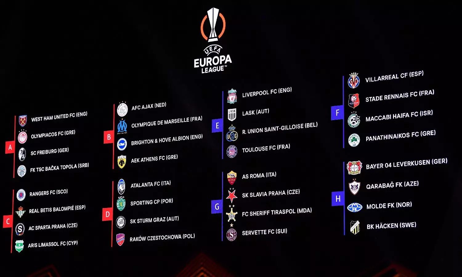Europa Conference League champions West Ham United were drawn with Olympiacos, Freiburg and TSC Backa Topola in Group A. Last season’s runners-up AS Roma meet Slavia Prague, Sheriff Tiraspol and Servette in Group G, while 1988 winners Bayer Leverkusen of Germany face Qarabag, Molde FK and BK Hacken in Group H.