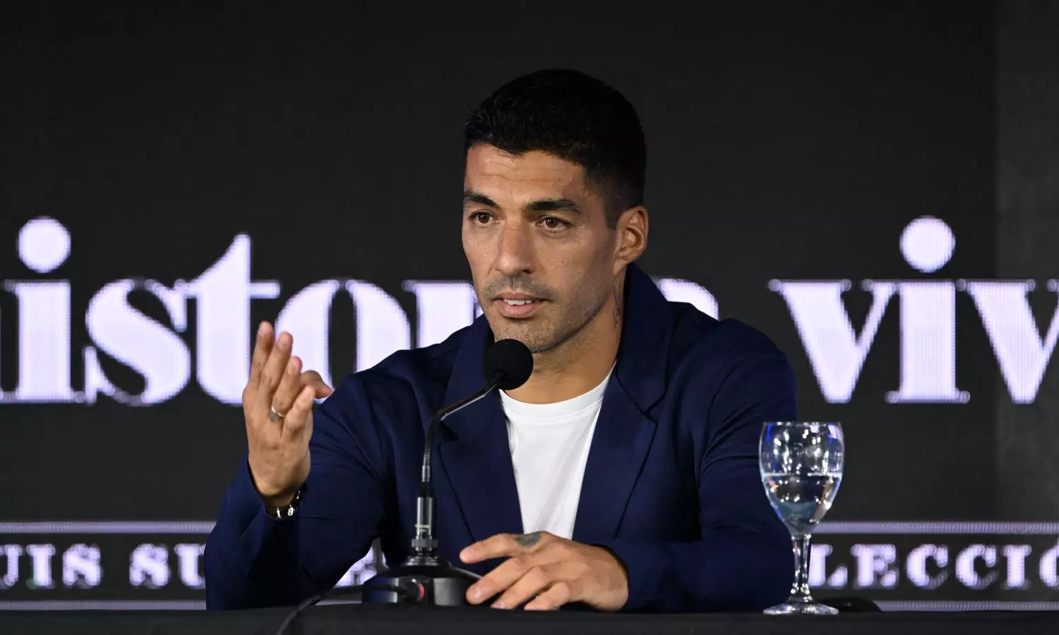 Luis Suarez interacts with the media ahead of World Cup qualifier in Uruguay