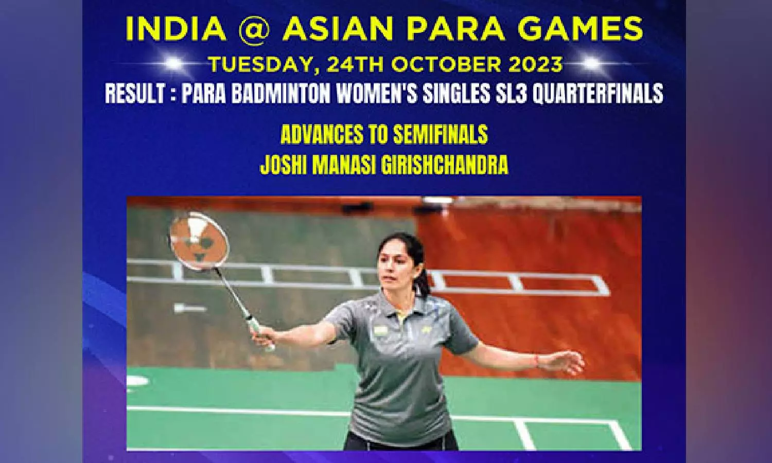 In badminton, shuttler Manasi Nayana Joshi defeated China's Yuemei Liu by 2-1 in the women's Singles SL3 quarter-finals. Liu took the first game with a hard-fought victory 21-17 victory.