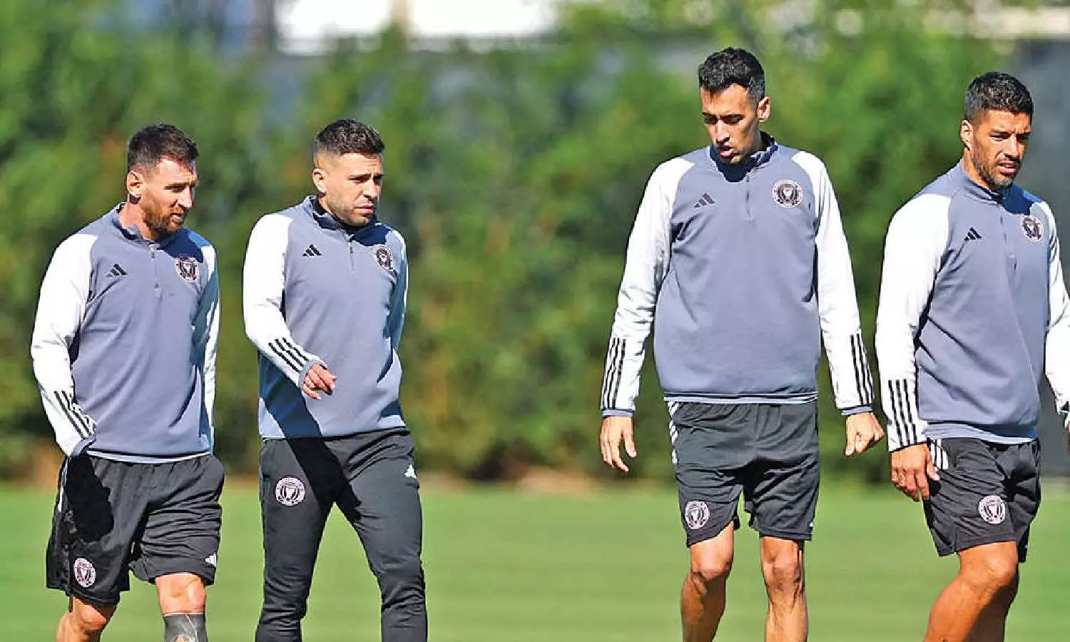 Messi, Alba, Busquets and Suarez at training ahead of opening match
