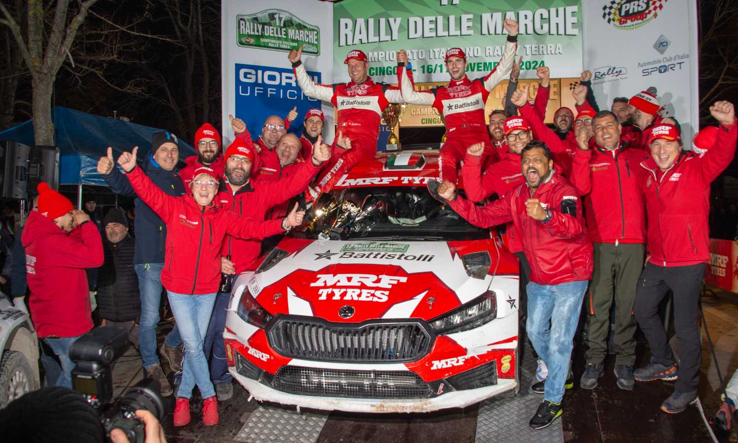 An exceptional driving display, well supported by the team and the performance of MRF Tyres helped Battistolli and Scattolin lead from the opening stage to the finish, achieving their second victory of the season. This triumph sealed the championship with a final score of 71.5 points.