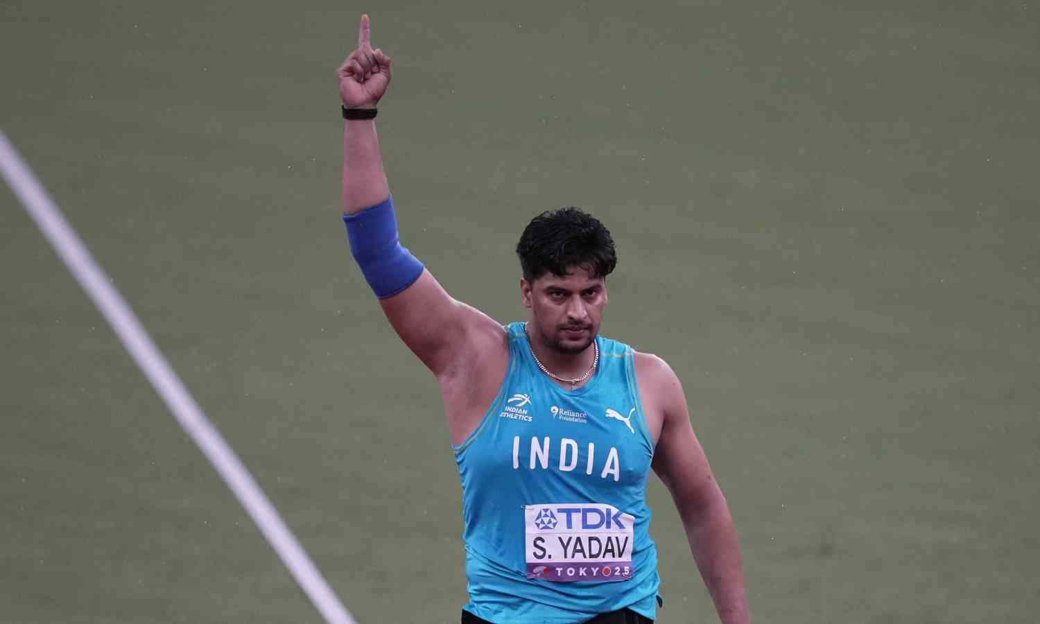 India's Sachin Yadav reacts after an attempt in the men's javelin throw final at the World Athletics Championships in Tokyo, Thursday, Sept. 18, 2025 (PTI)