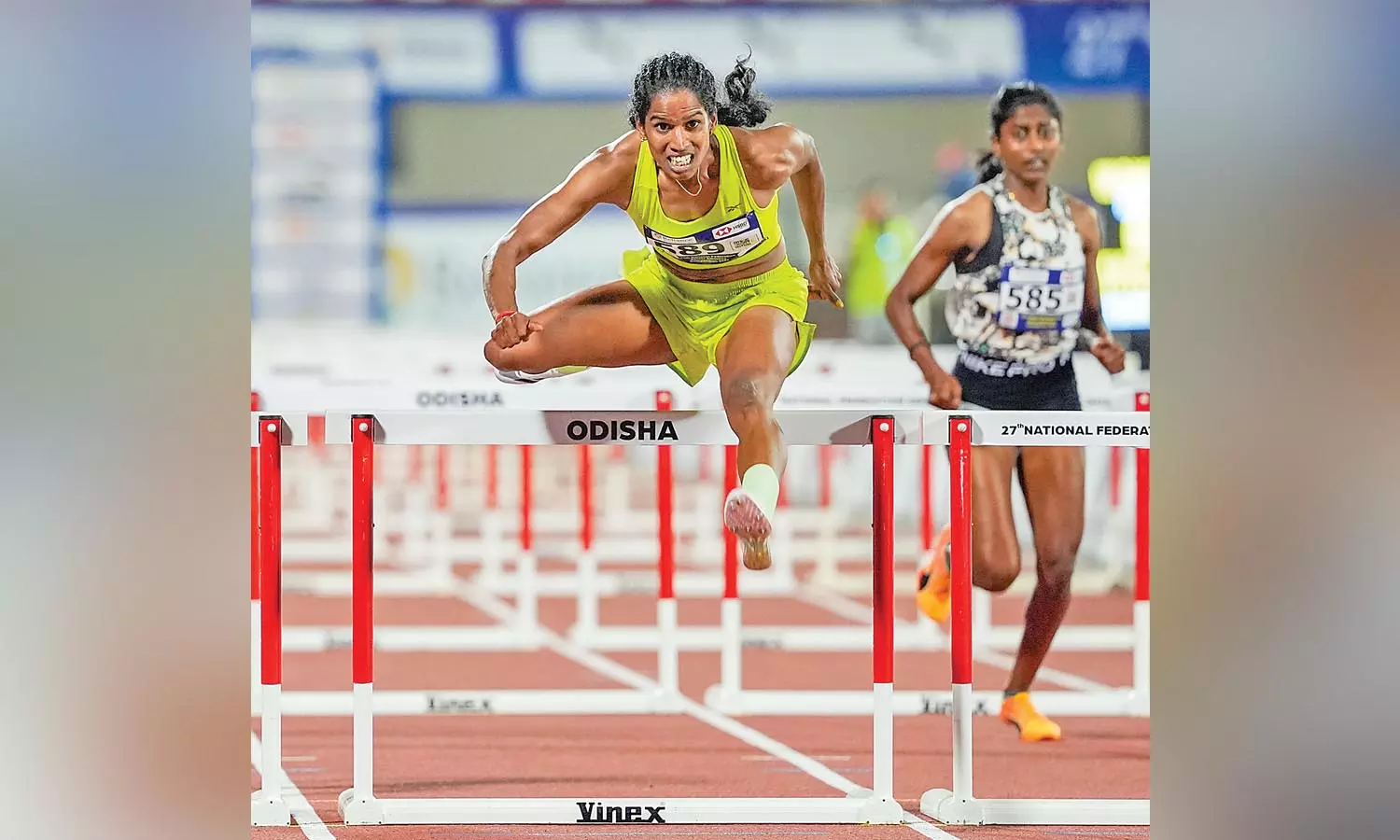 CHENNAI: After her twin Vithya Ramraj pulled out of the women's 400m hurdles event on Sunday, Nithya Ramraj went all the way to secure the gold medal at the women's 100m hurdles event with a timing of 13.14s.