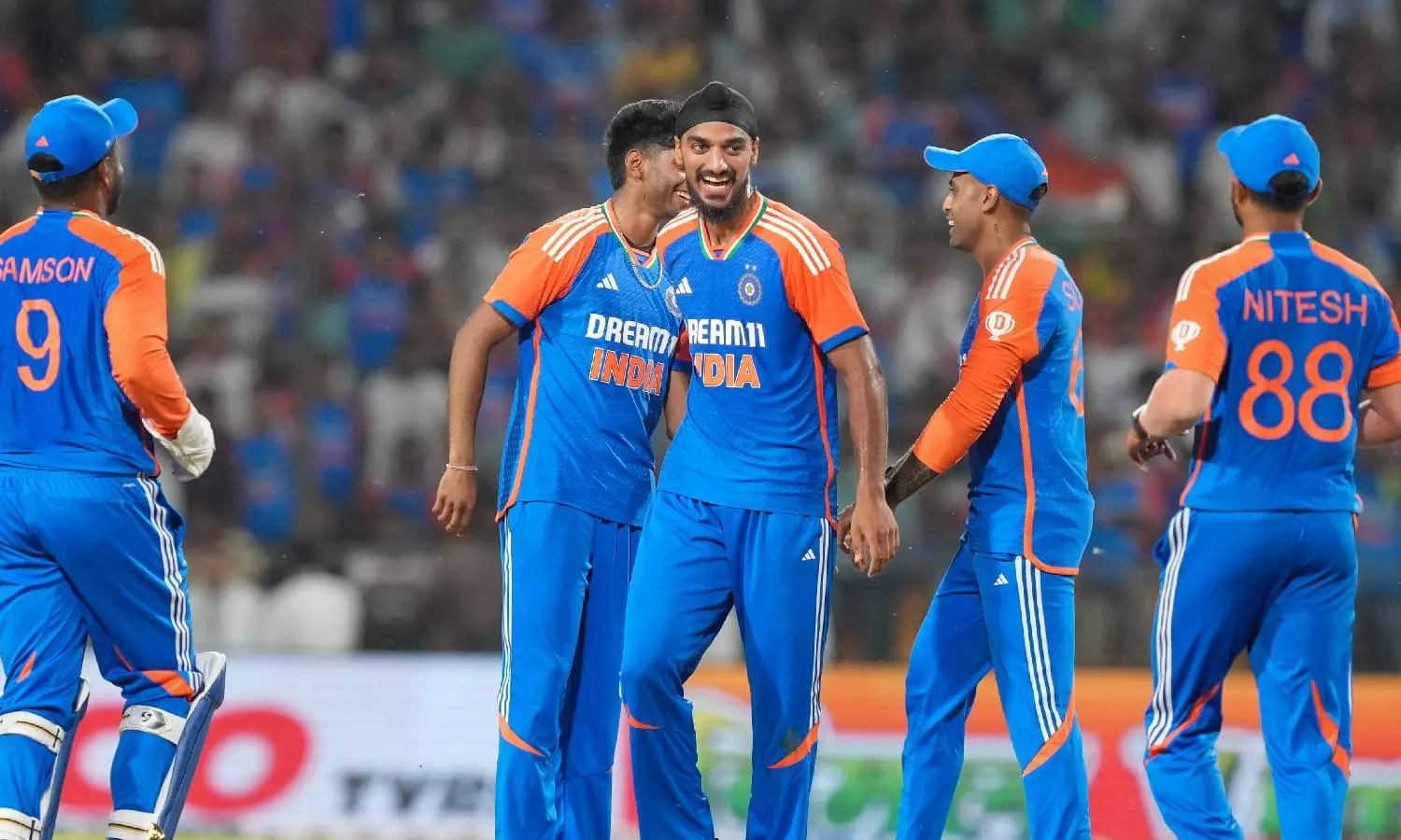 Indian players celebrate after picking a wicket (PTI)