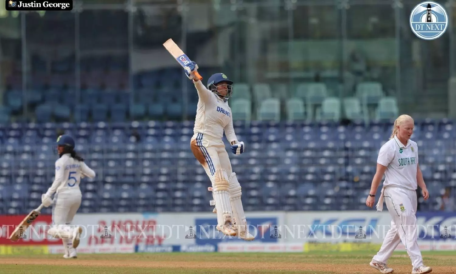 Shafali was dismissed soon after, being run out at 205 (197 balls). The young opener's previous best in Tests was 96.