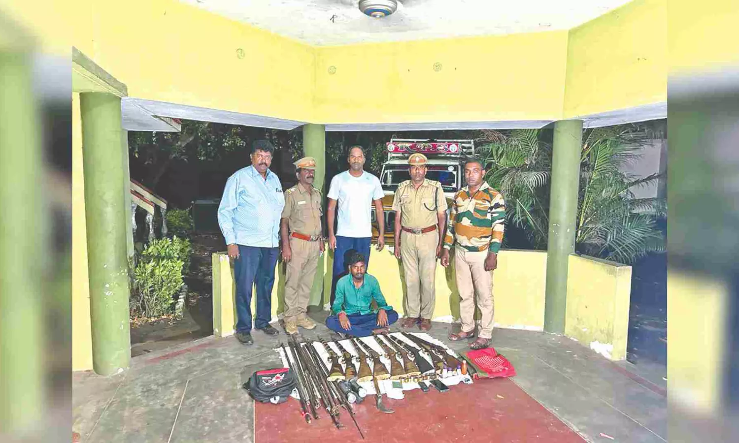 Interrogation revealed that the person who escaped was Udayakumar (29) of the same village. Forest officials seized nine unlicensed country guns, the car and two mobile phones from the accused who was arrested and remanded to custody on Saturday. Search is on to nab the escaped person.