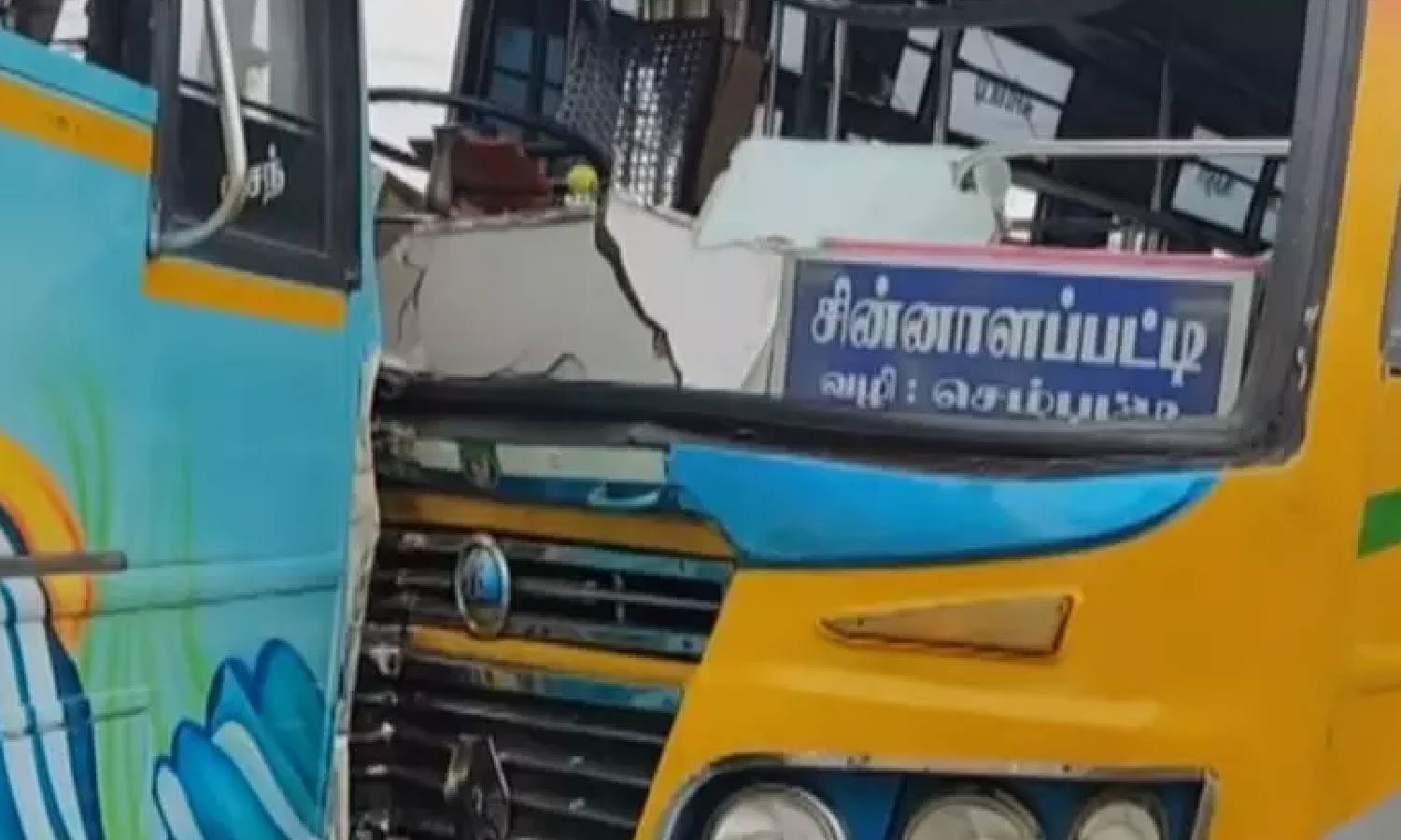 The buses collided head-on near Chinnalapatti and the reason for the accident was speed of the bus.