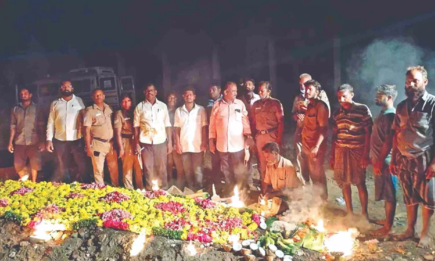 After the police approached the NGO, they sought the support of the Thanjavur Municipal Corporation which had dug the land at Rajagori crematorium and buried the unclaimed corpses. The members performed the rituals for the bodies and placed flowers. The NGO also thanked the medical college, police, and Corporation officials for trusting them with the task.
