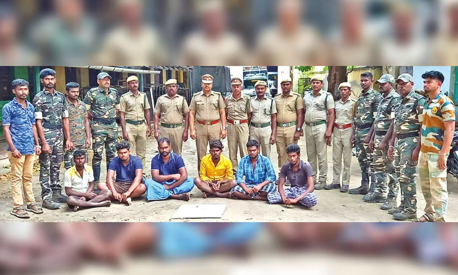 The forest officials nabbed seven persons identified as K Sathish Kumar (27), D Nachimuthu (22), K Padmakumar, (19), P Logesh (22), C Paul Dinakaran (22), R Soundarajan and a 17-year-old boy.
