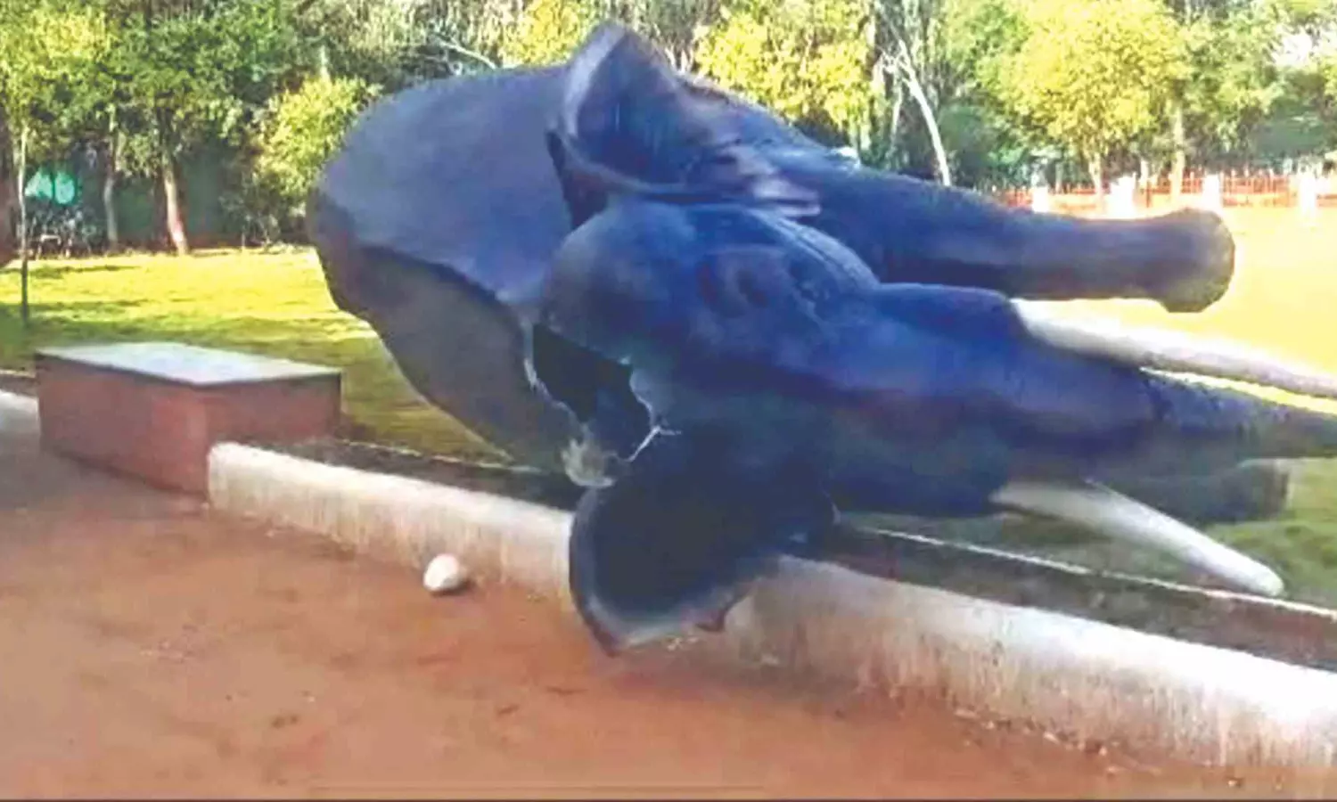The structure of an elephant in the college campus pushed down by ‘Bahubali’