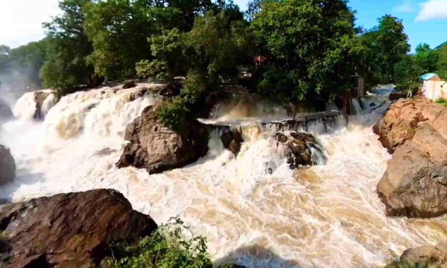 The water inflow levels at the Hogenakkal Falls has reached 74,000 cusecs.