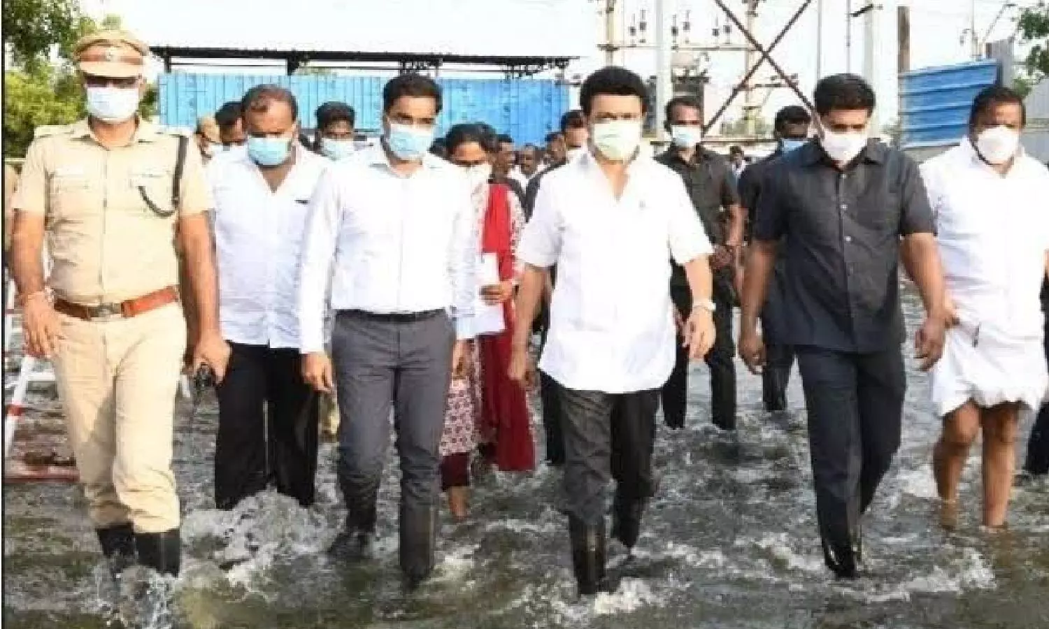 Chief Minister M K Stalin and others visits rain-affected areas in Chennai