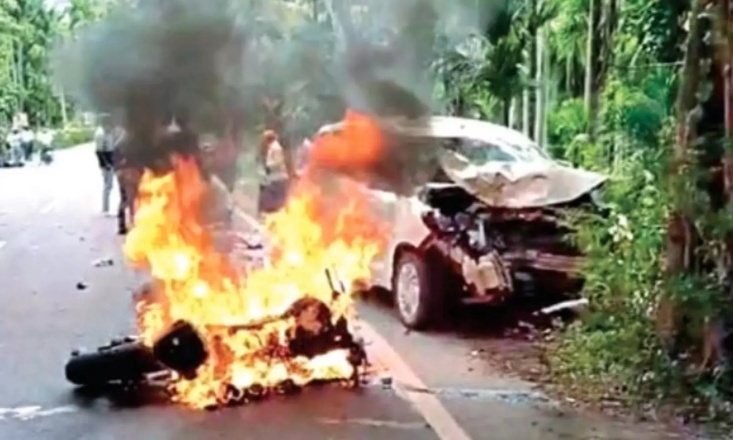 “Two college students identified as Altop (20) and Zunith (18), both studying in Government Arts College rammed their two-wheeler from the opposite direction. In the impact of the mishap, the duo was thrown off and the bike caught fire,” police said.