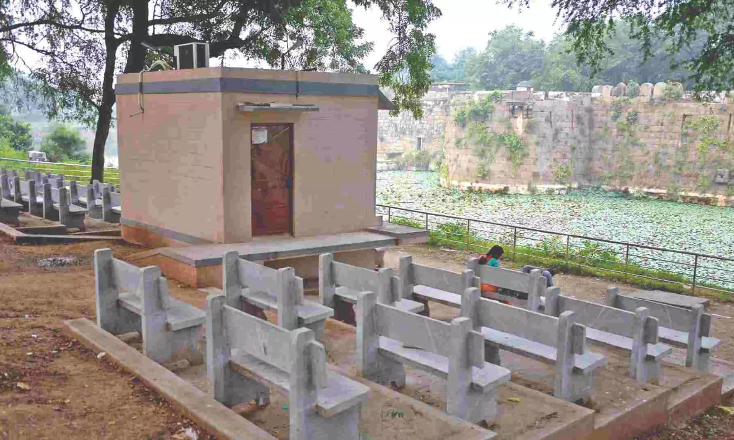 Newly-constructed concrete benches, projector room and walls of the Vellore Fort to screen 3D shows
