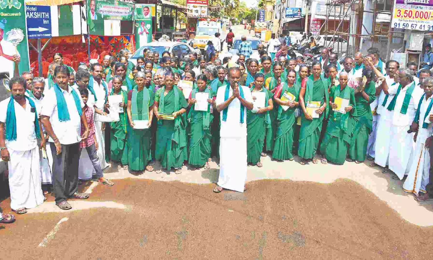 The farmers association candidate Senthil Kumar campaigning in Thanjavur on Thursday