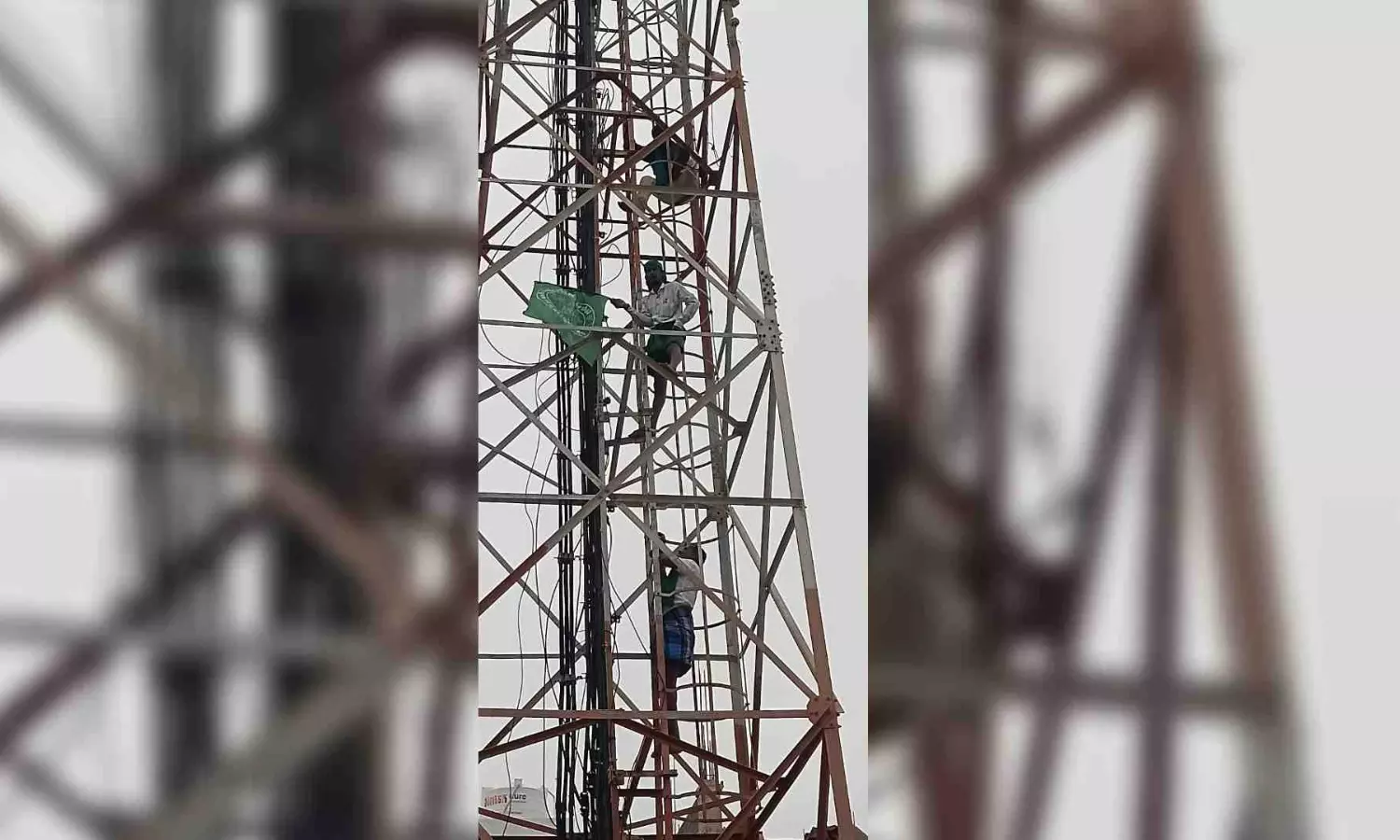Meanwhile, on Wednesday, a section of farmers from the association who gathered at Woraiyur started climbing atop a private cell phone tower by raising slogans against the police demanding the release of their leader Ayyakannu.
