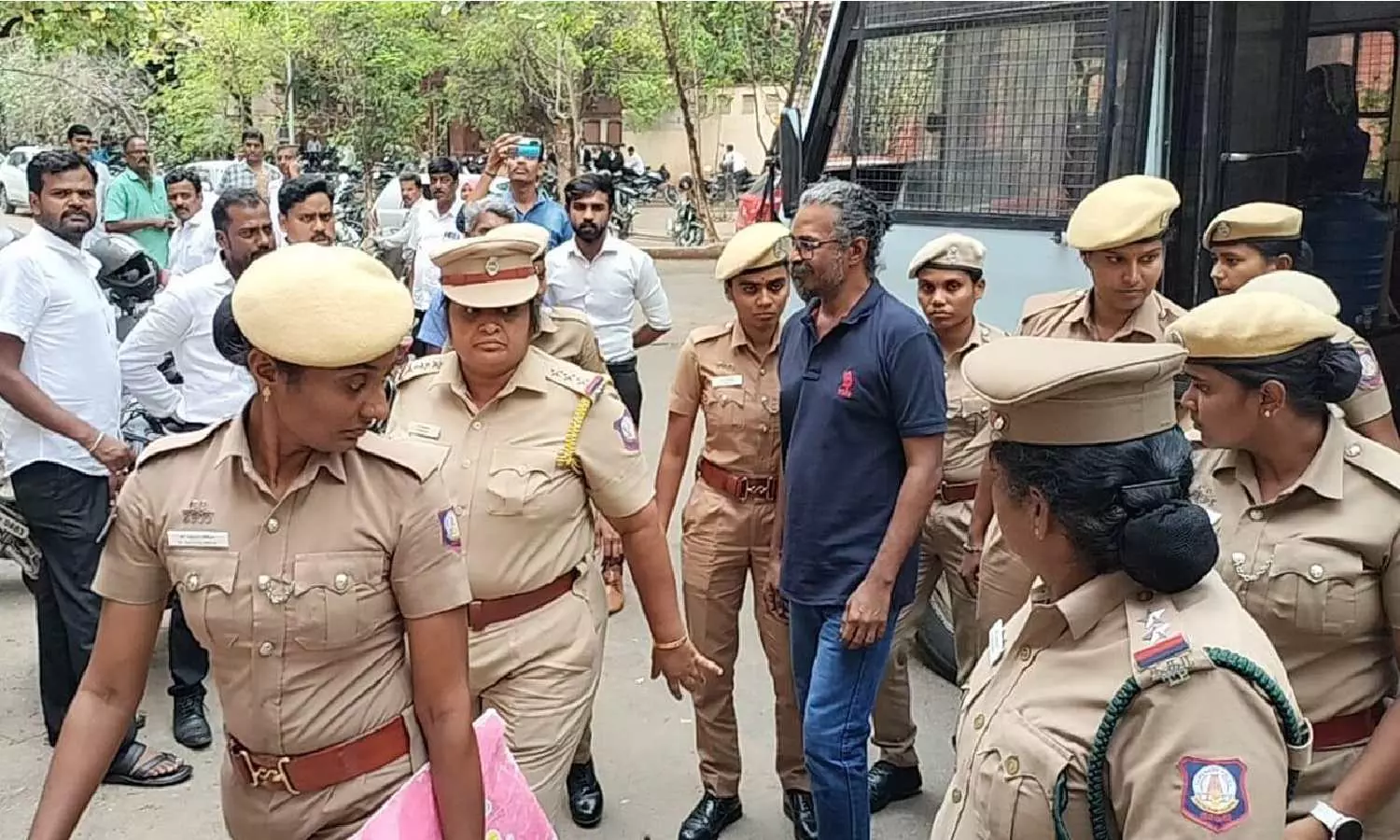 Caption: Police producing Felix Gerald before the Magistrate Court V in Coimbatore on Friday