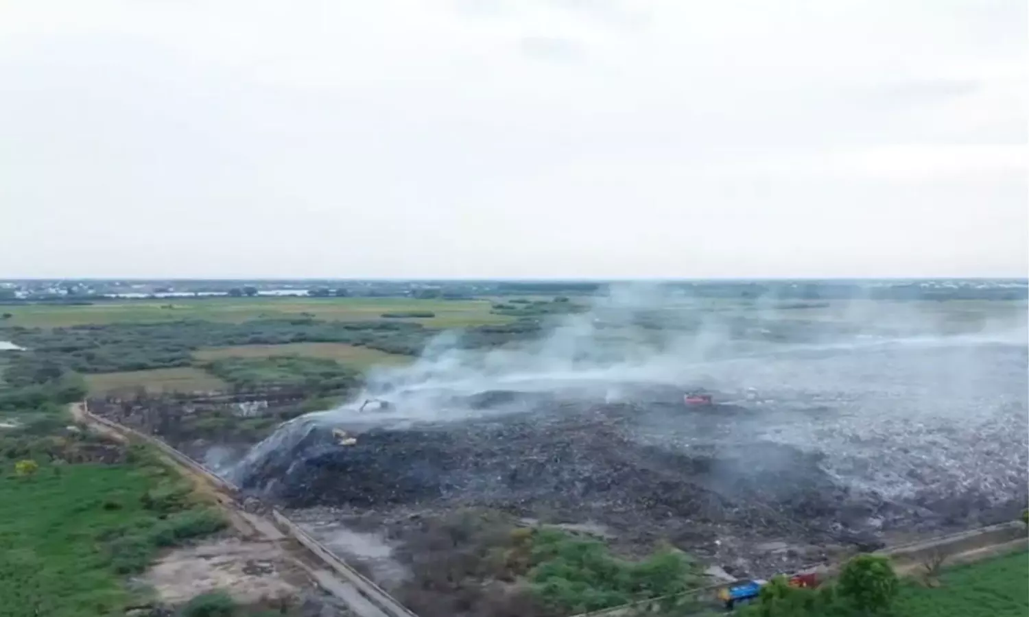 Fire at the Vellaikkal garbage dump yard near Avaniapuram on the outskirts of Madurai for the past week.